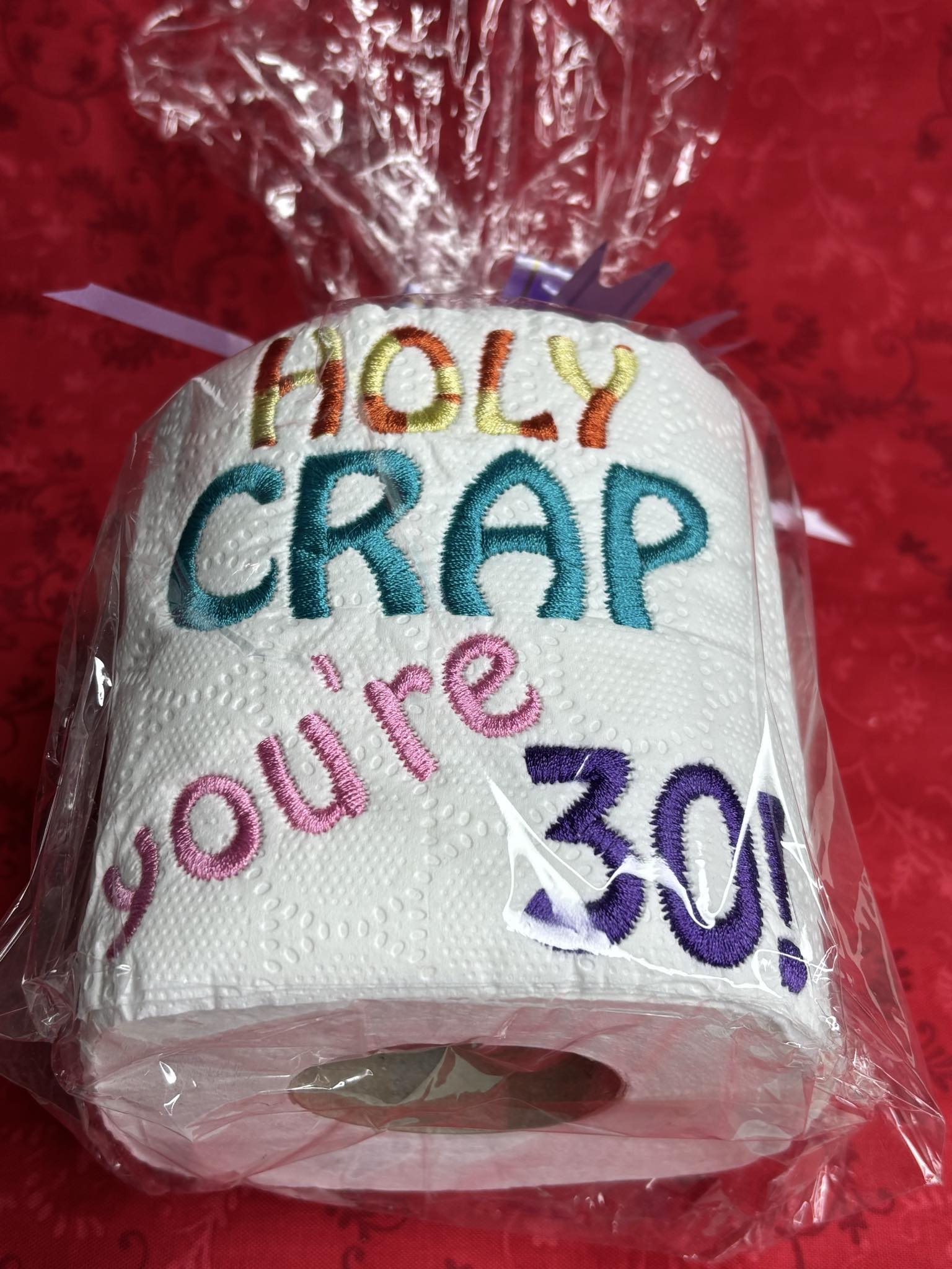 To keep this as a fun thing in the bathroom, you can take the embroidery off and frame it and then use the toilet roll